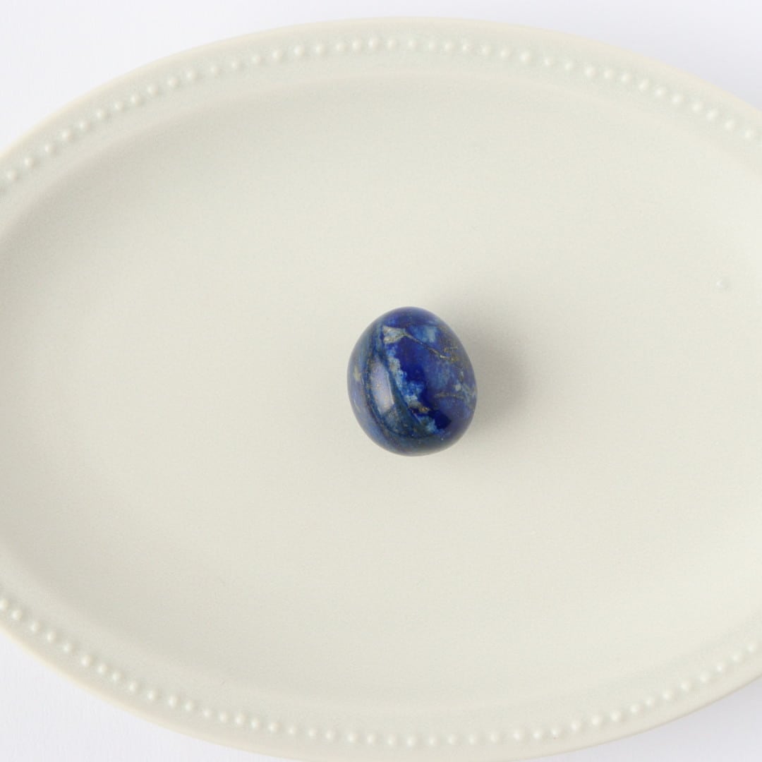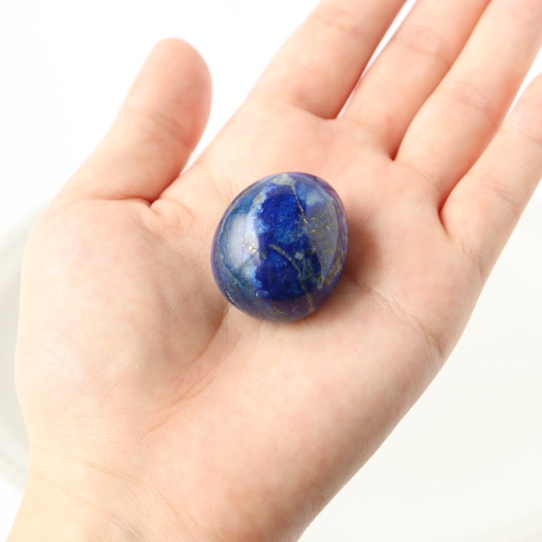 鮮やかなブルーとパイライトのインクルージョンが美しい、ラピスラズリのタンブル。