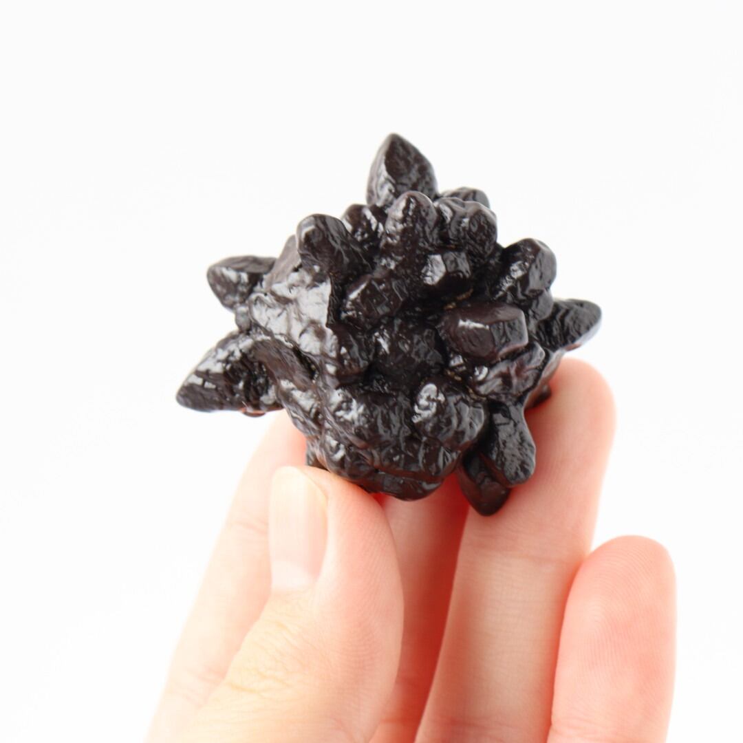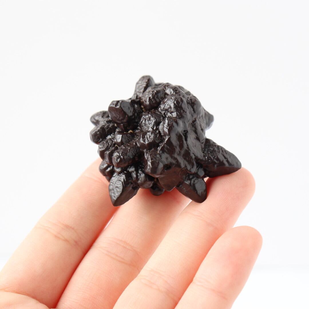 トゲトゲとした不思議な形状がミステリアスで、マーカサイト(白鉄鉱)が長い年月をかけてゲーサイト(針鉄鉱)に変化した「仮晶」という現象が起こったものだと考えられています。