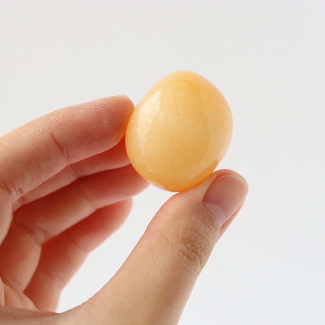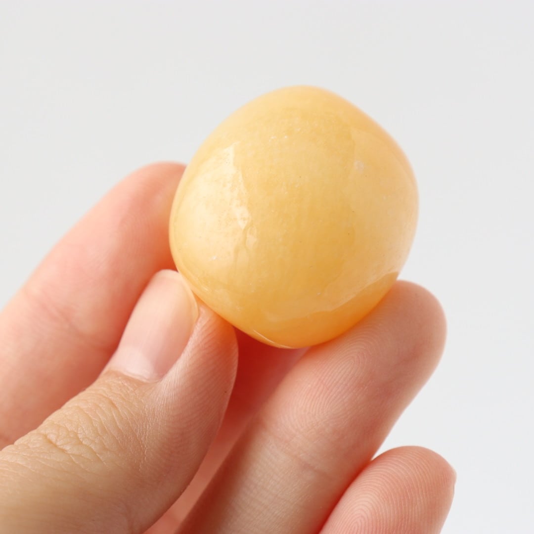 やわらかなイエローオレンジカラーが優しい、カルサイトのタンブル。