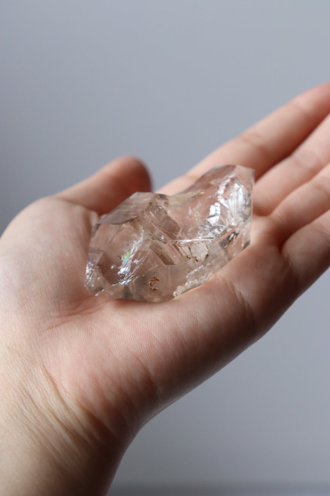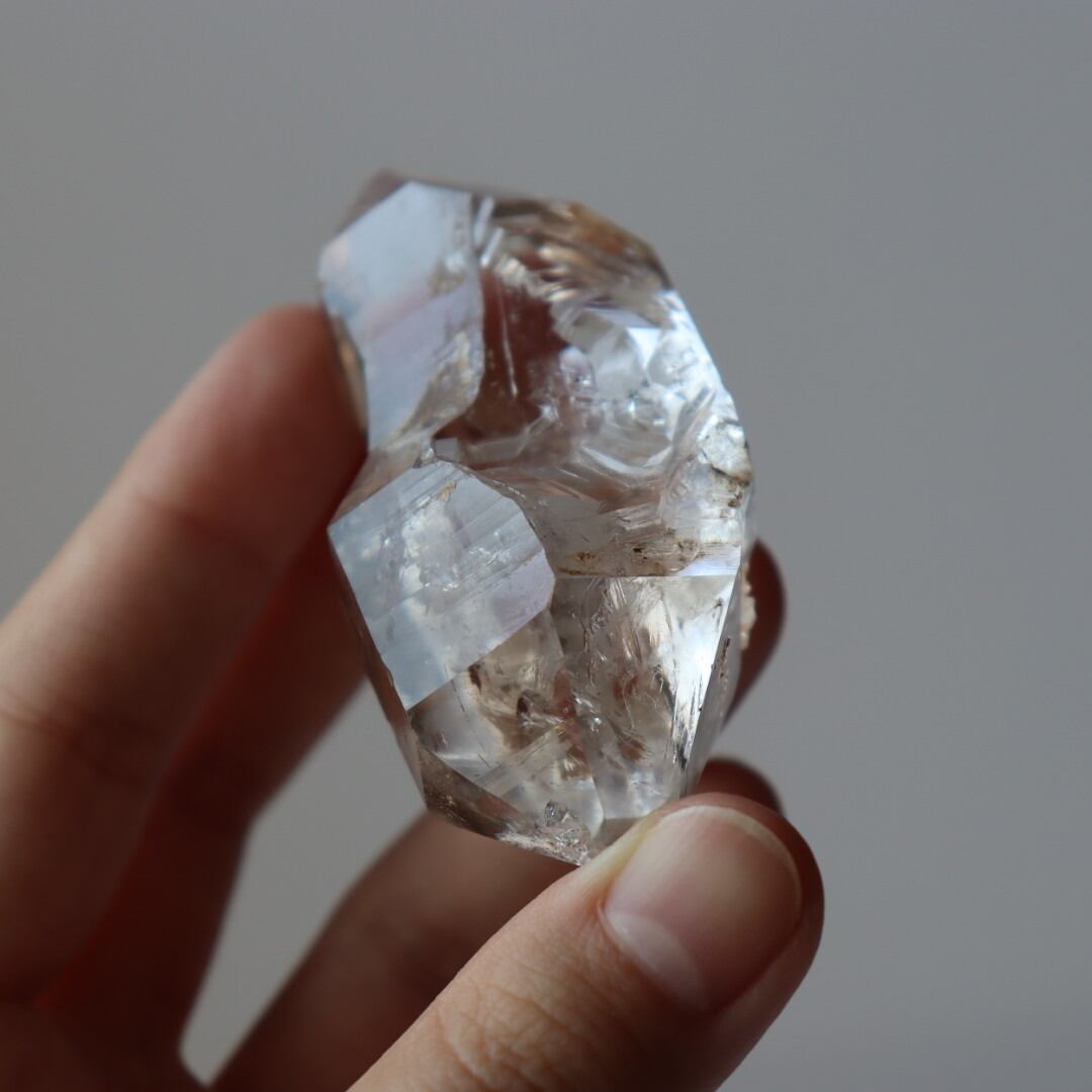 強い照りと圧倒的な透明感をもつ、ハーキマーダイヤモンドの原石。