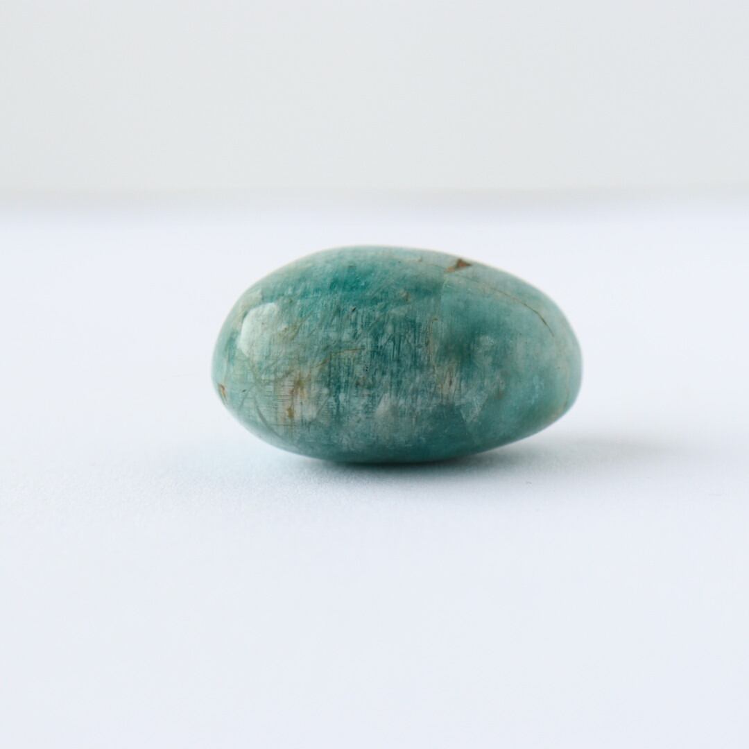 目を引くピーコックグリーンが美しいアマゾナイトのタンブル。