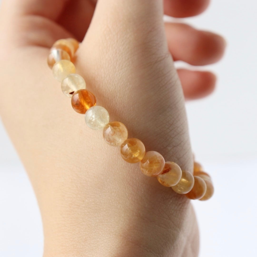 太陽の光をそのまま閉じ込めたような、明るく温かな色合いが魅力のシトリンのブレスレット。
