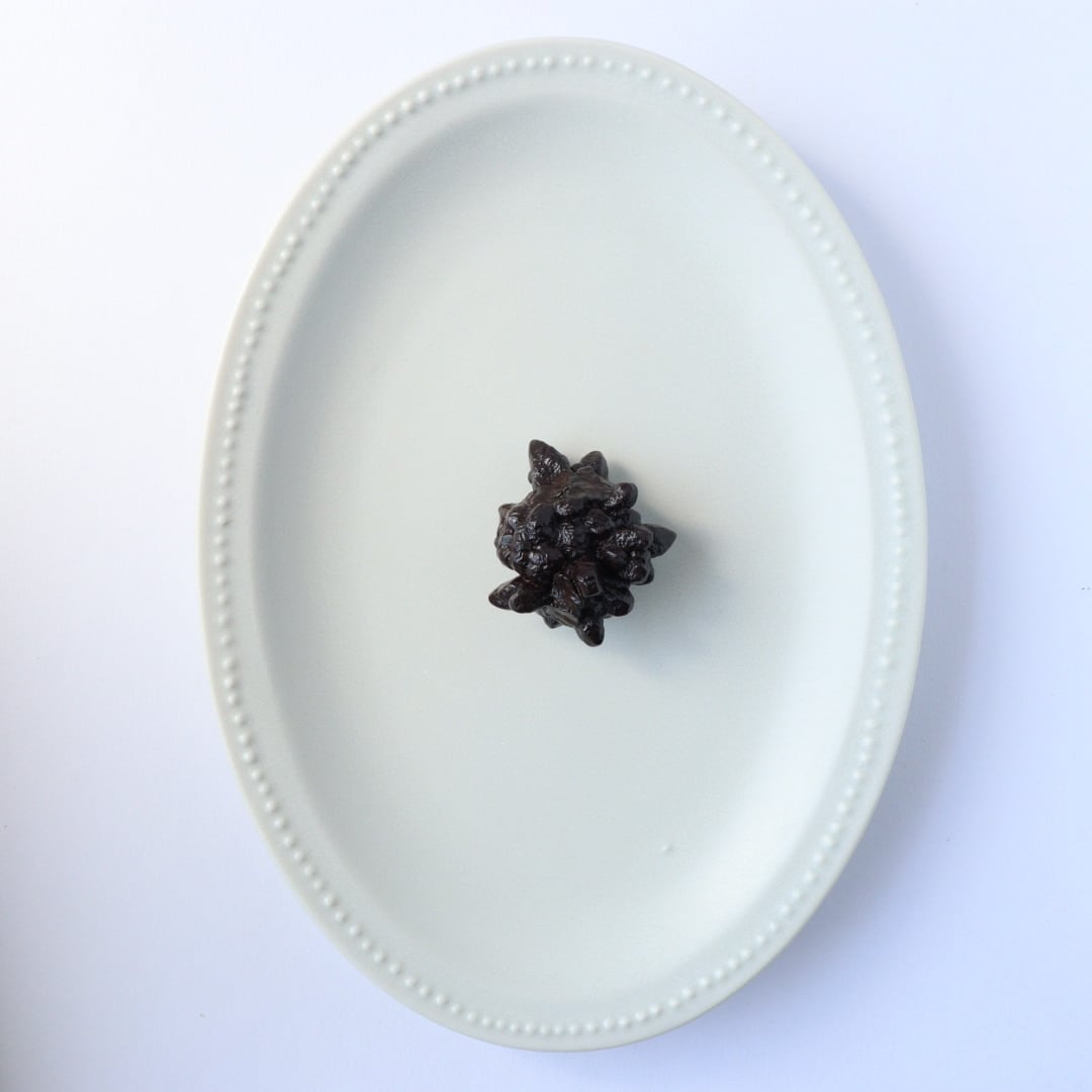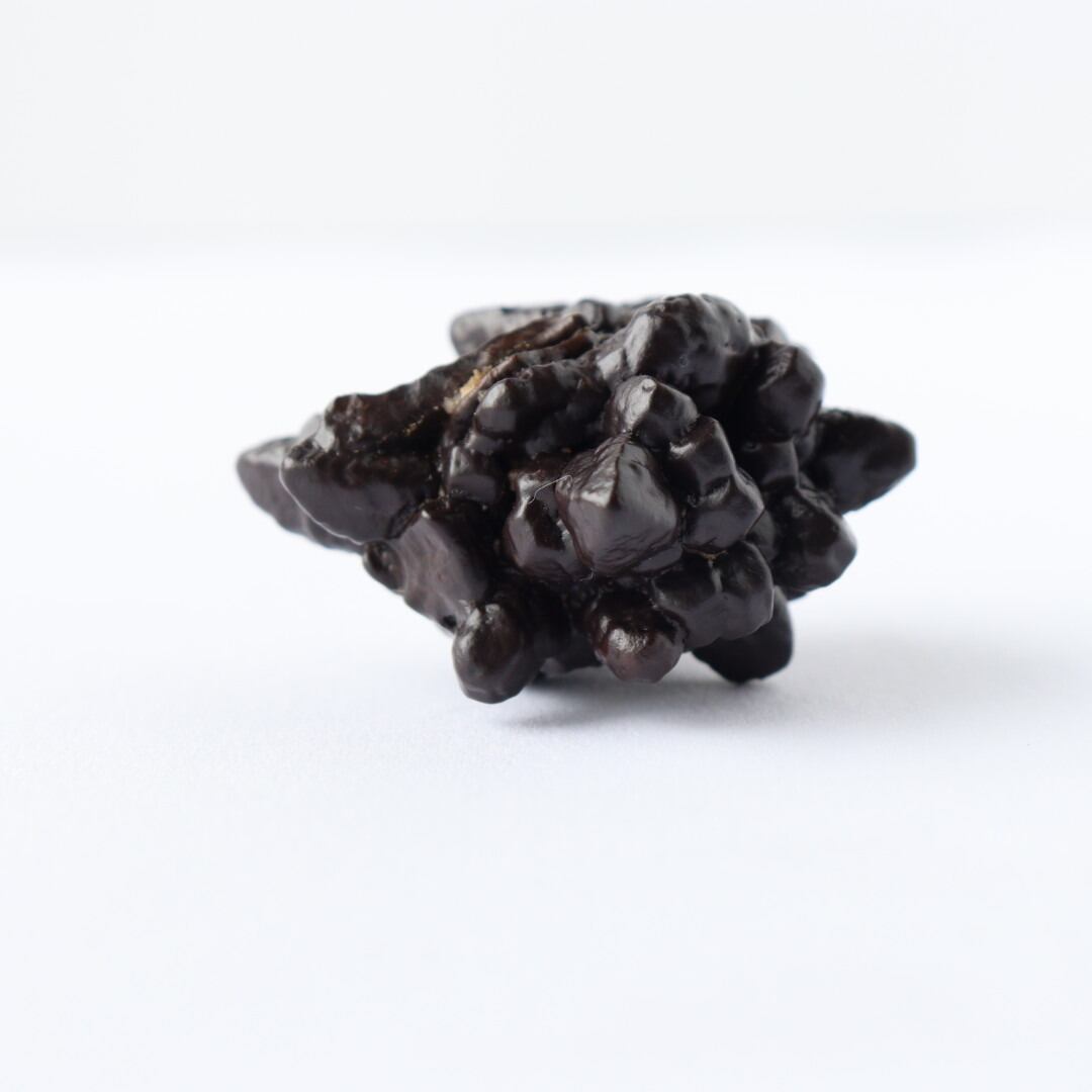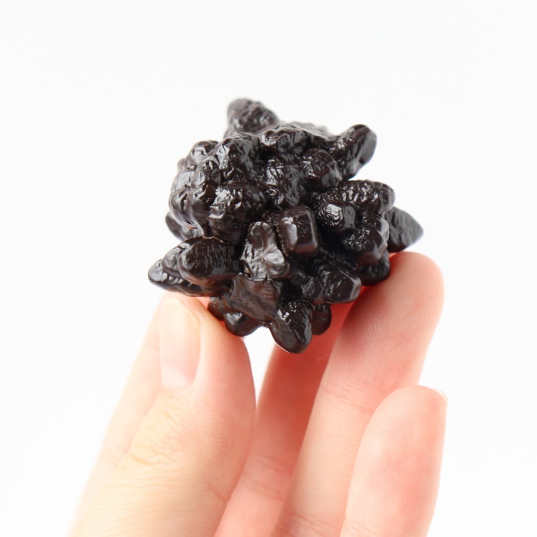 トゲトゲとした不思議な形状がミステリアスで、マーカサイト(白鉄鉱)が長い年月をかけてゲーサイト(針鉄鉱)に変化した「仮晶」という現象が起こったものだと考えられています。