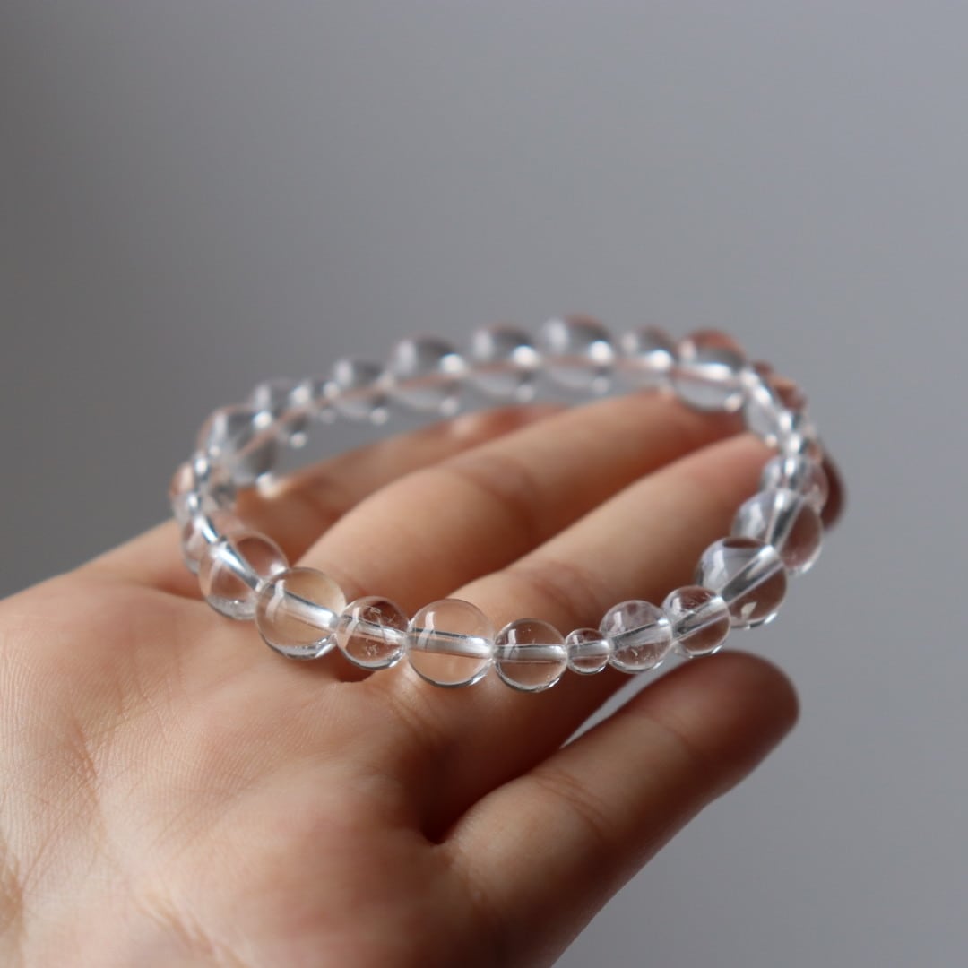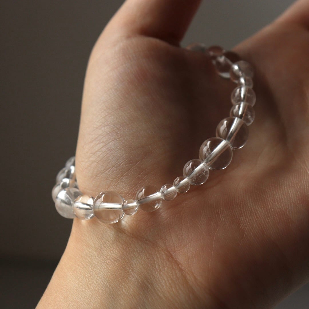 透明度の高い結晶を組み合わせた、クリアクォーツのブレスレット。