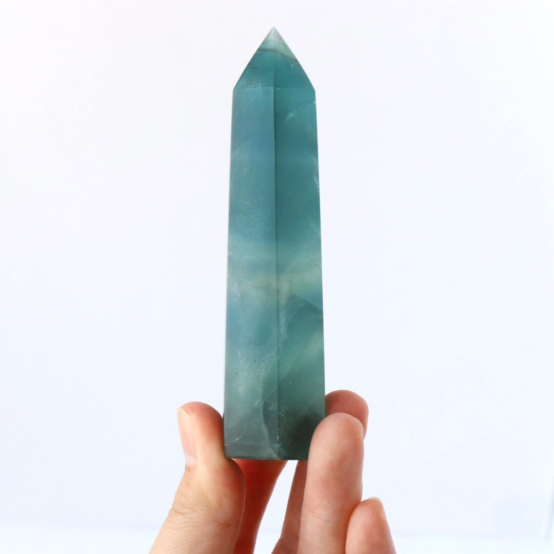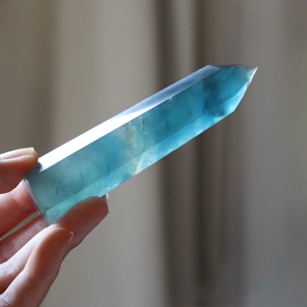 透き通るブルーの結晶をもつ、ブルーフローライトのタワー。