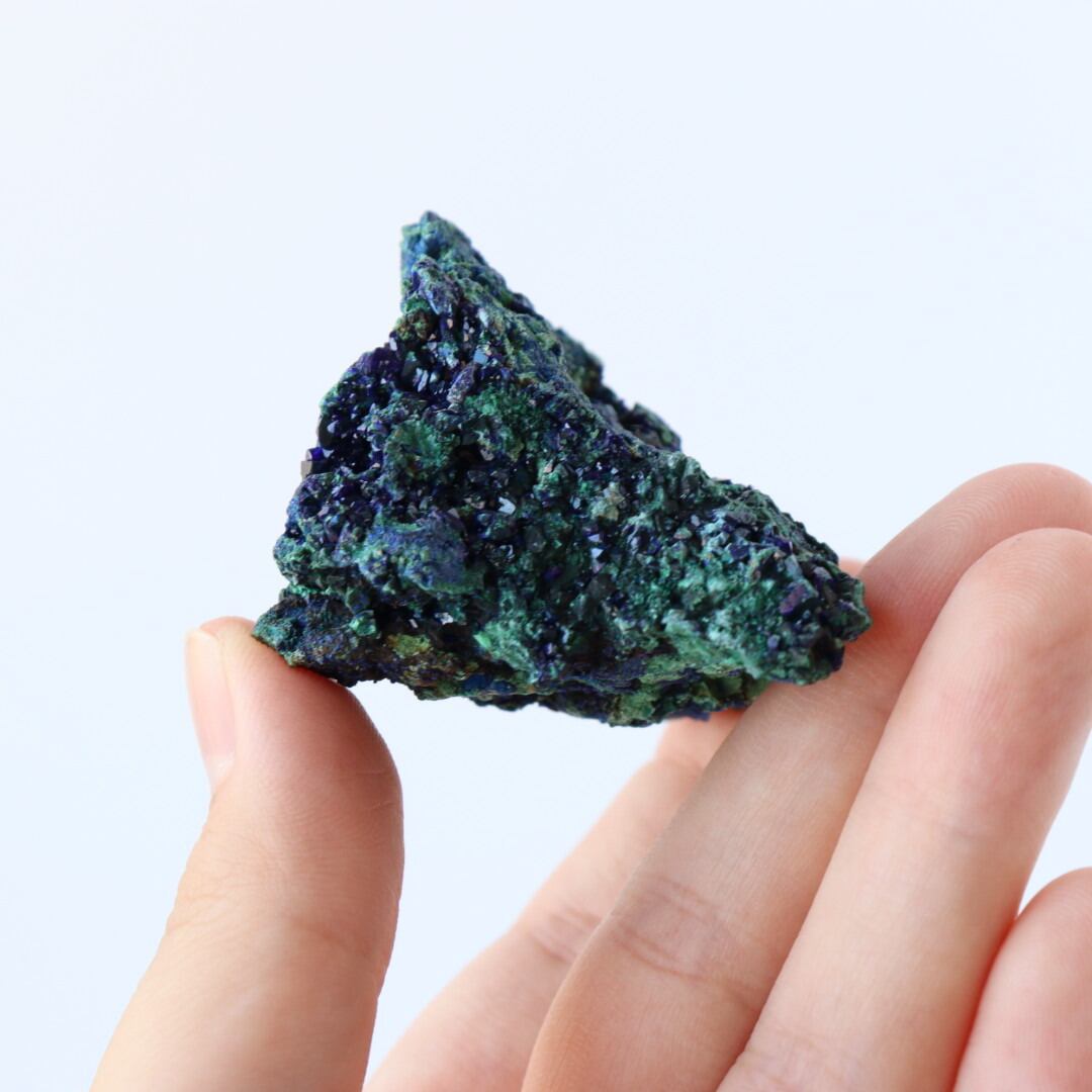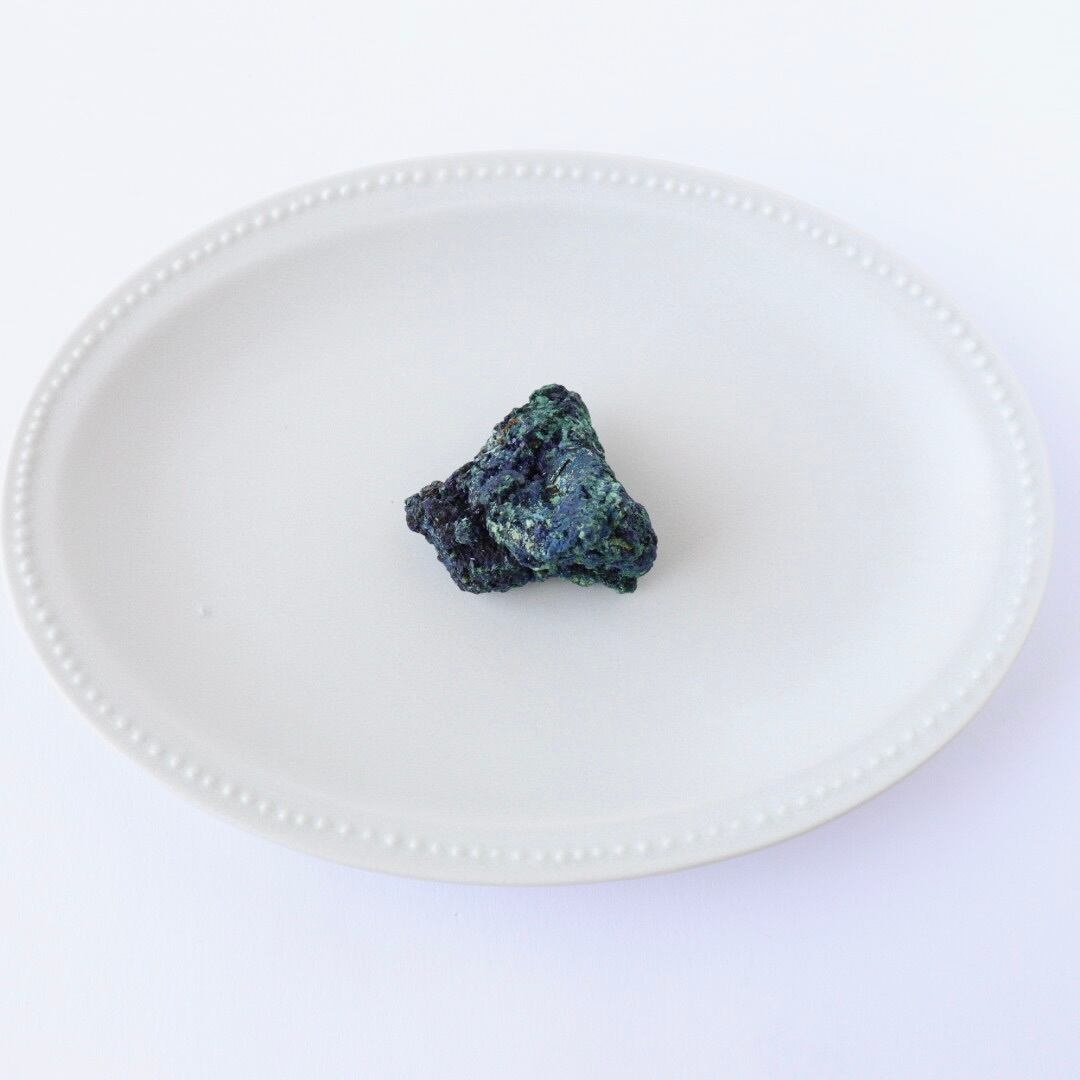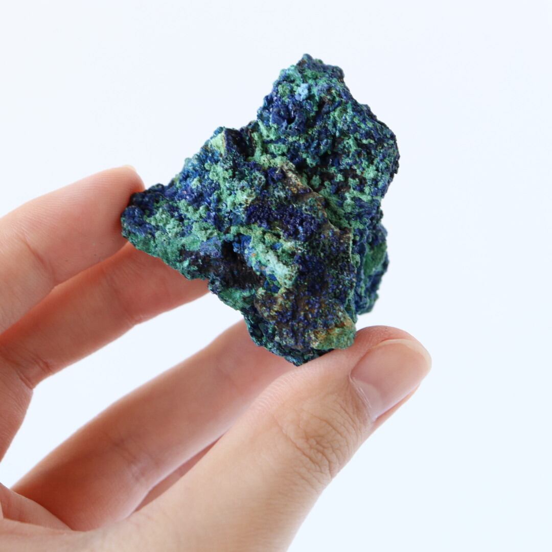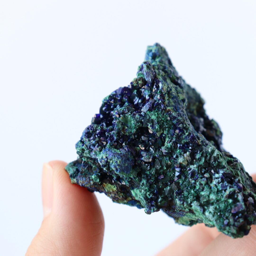 アズライトの深く美しい藍色とマラカイトの鮮やかなグリーンカラーのコントラストの美しさから、原石のコレクションする方も多い人気の天然石です。
