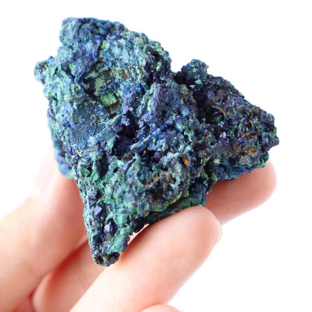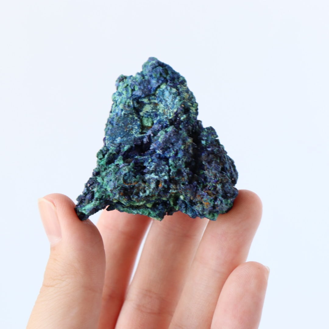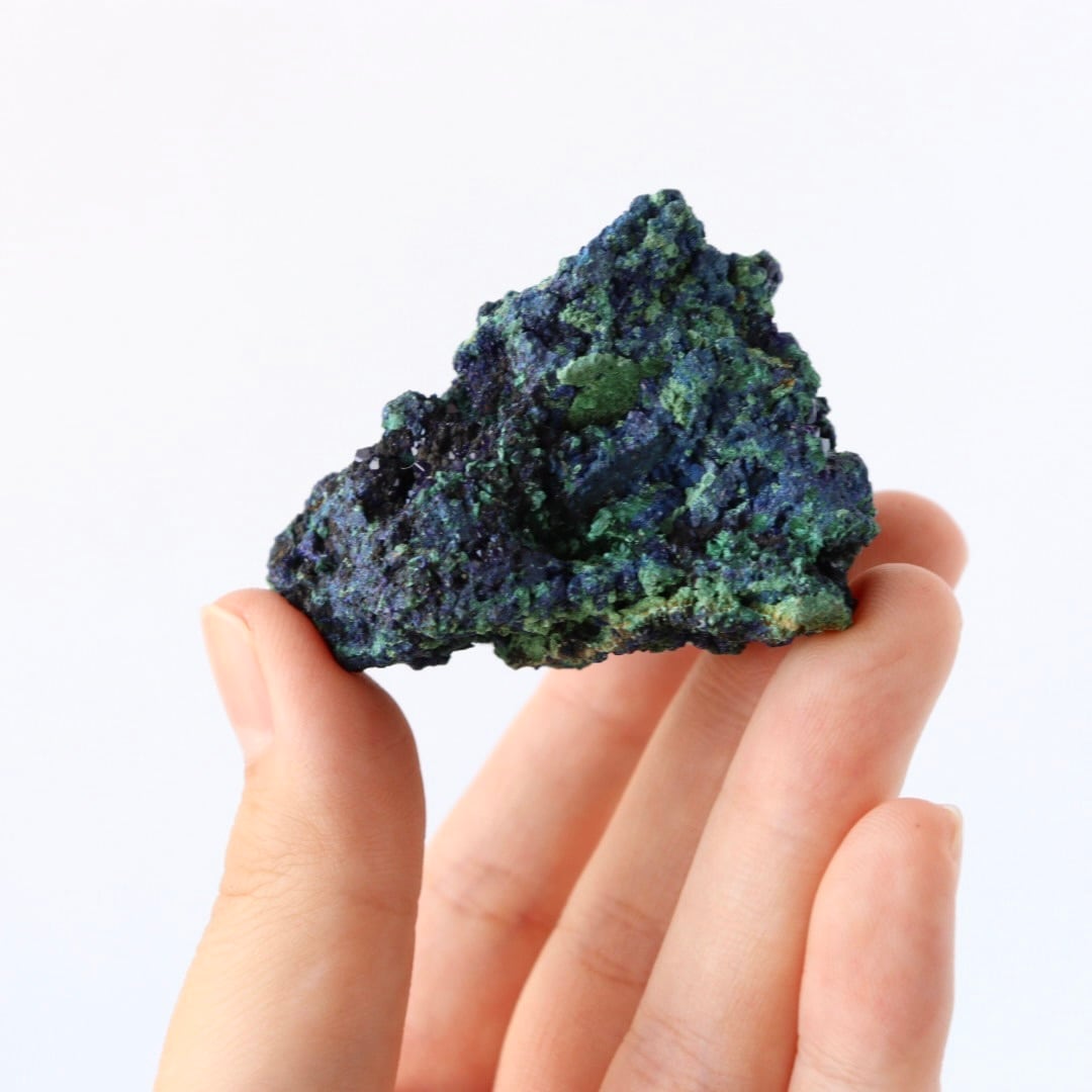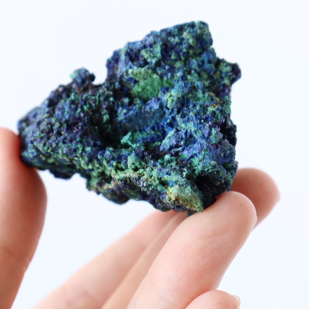 アズライトの深く美しい藍色とマラカイトの鮮やかなグリーンカラーのコントラストの美しさから、原石のコレクションする方も多い人気の天然石です。