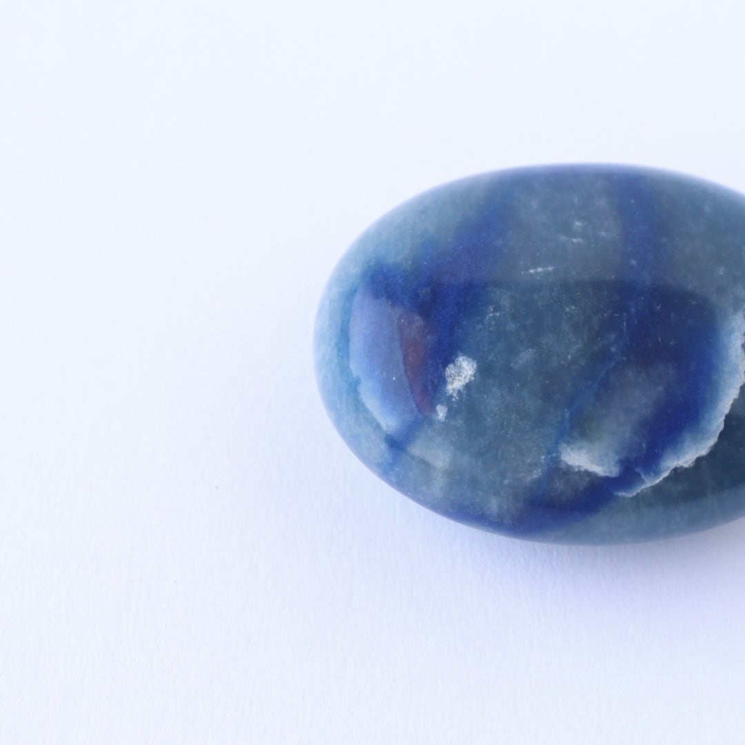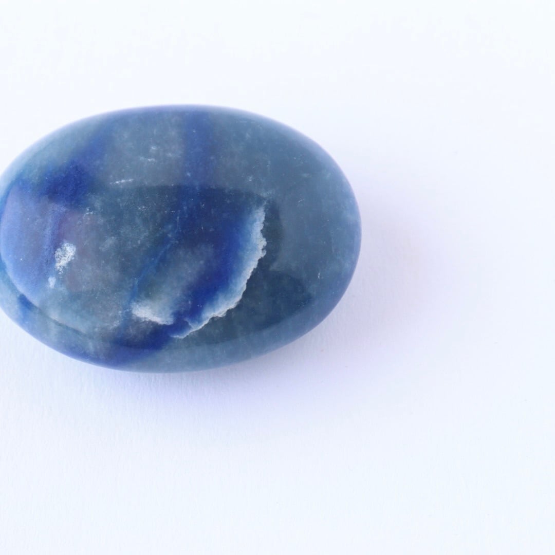 一部に凹みはあるものの、整った楕円型が手にすっと吸い込まれるようなブルーアベンチュリンです。
