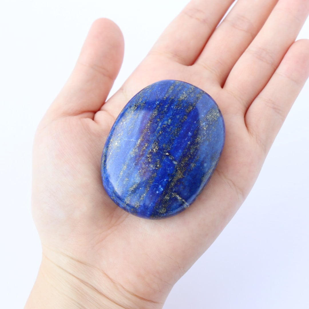 こちらは、濃厚なブルーカラーをもつラピスラズリの握り石。