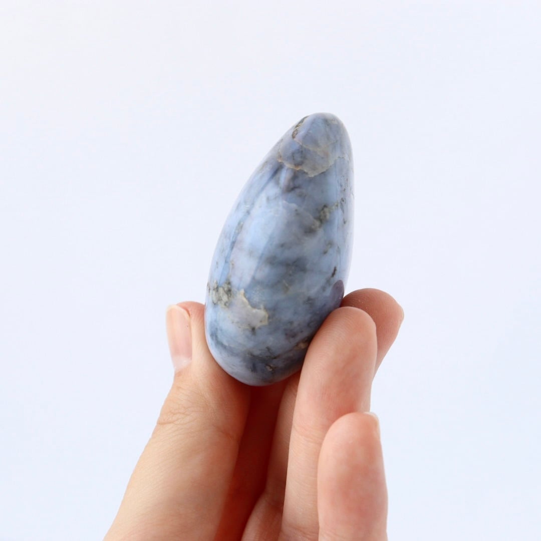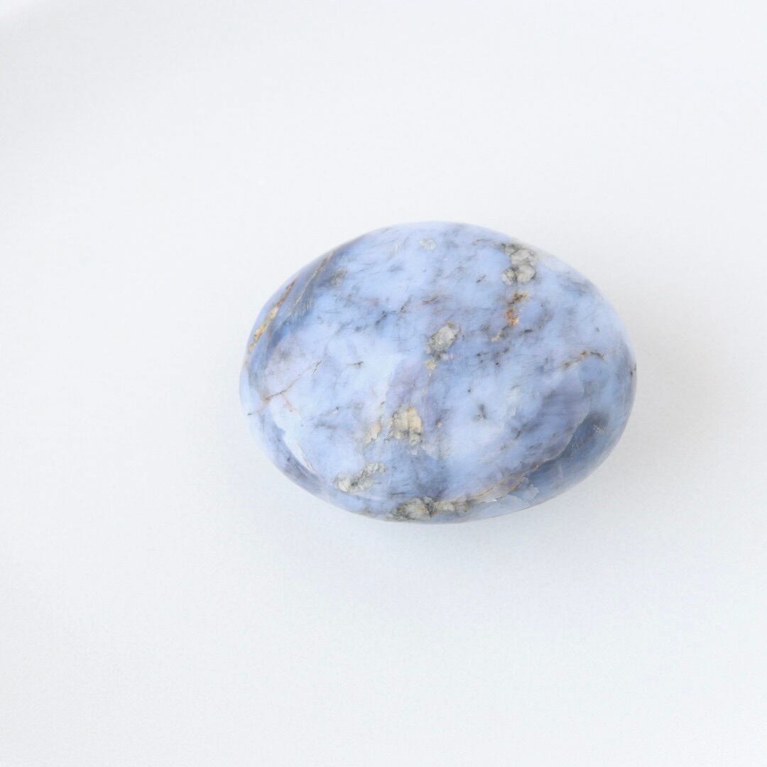 優しいブルーグレーが印象的な、ブルーオパールの握り石。