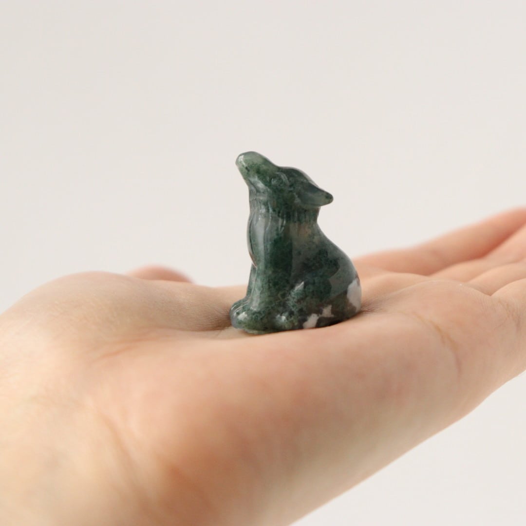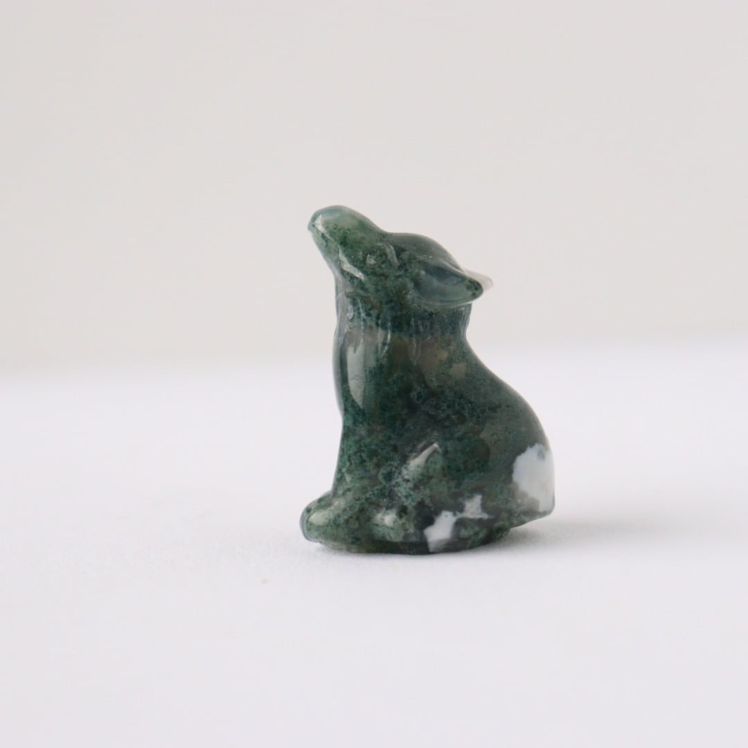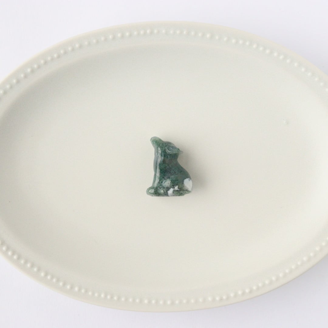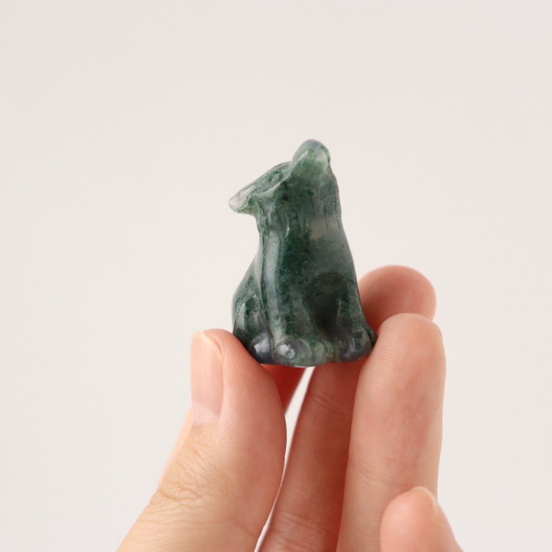 こちらは、ちょこんと座った姿のモスアゲートの狼。