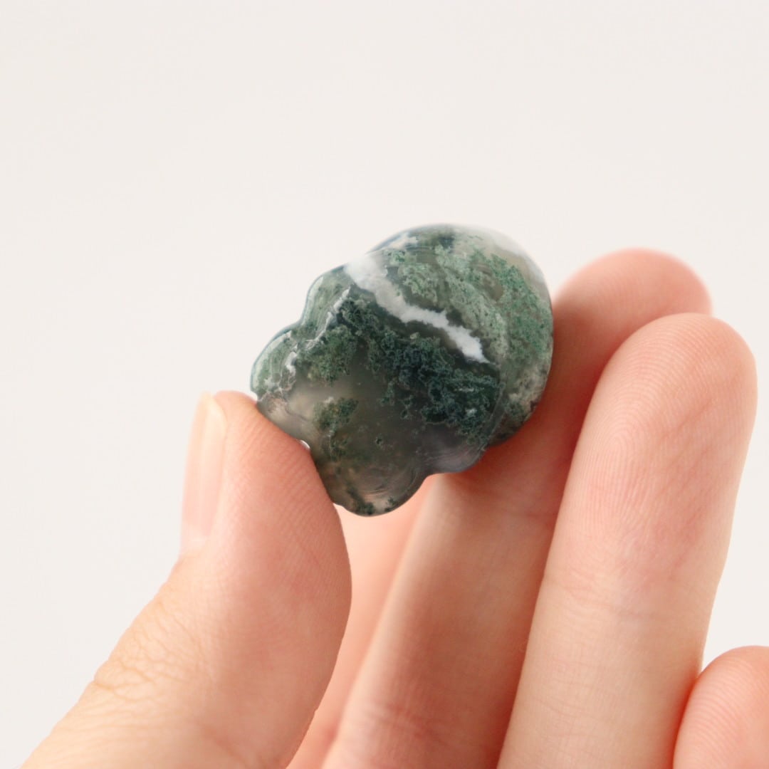 モスアゲートは、半透明のクォーツにグリーンやブラウンカラーの苔状の鉱物が内包された天然石で、自然の景色を閉じ込めたような模様が特徴です。持つ人に安定や癒し、自然との調和をもたらすとされています。