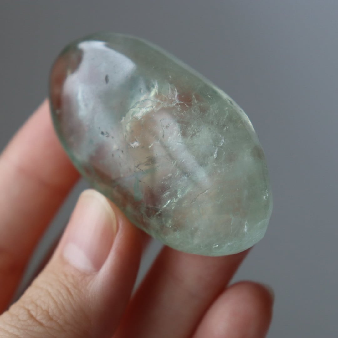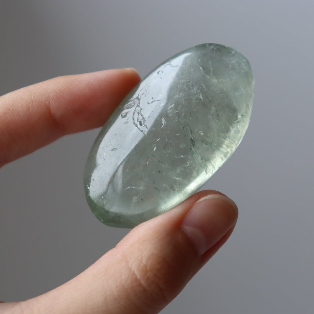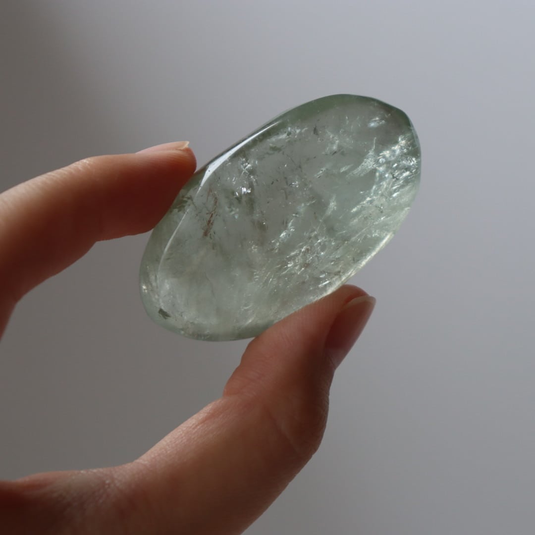 透明な美しい結晶を手に取り眺めると淡いグリーンの輝きが疲れてしまったこころを優しく包み、リラックスさせてくれます。