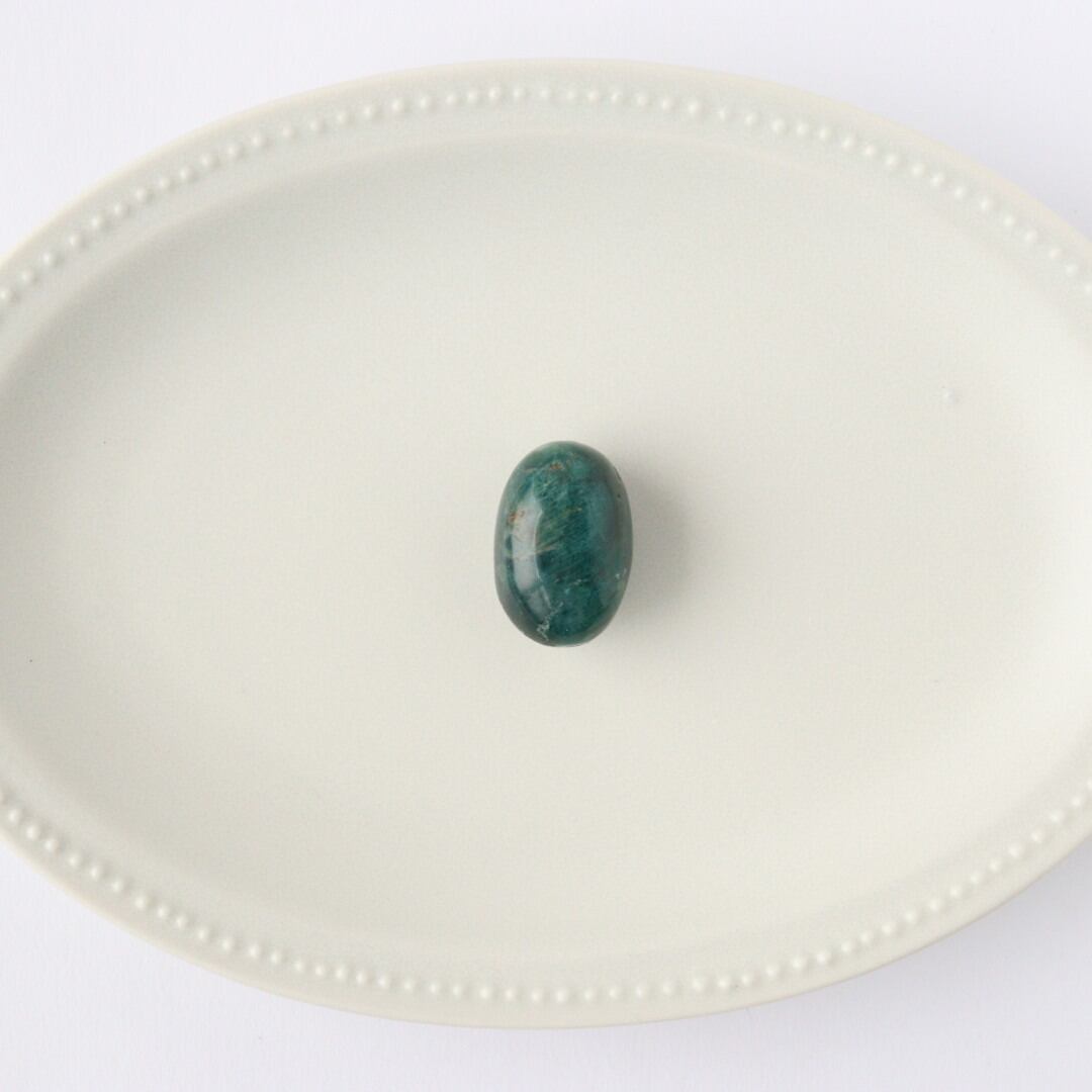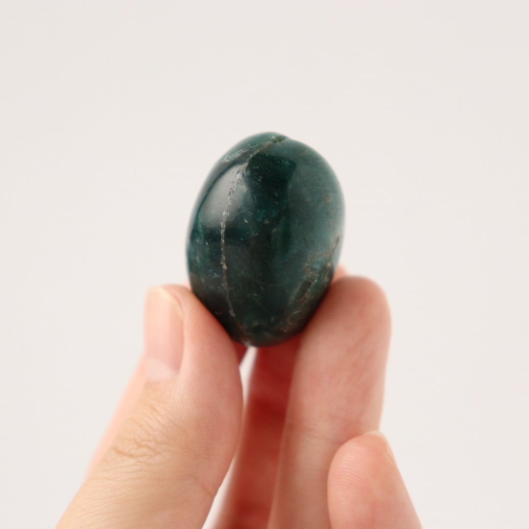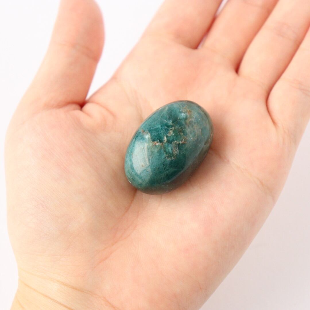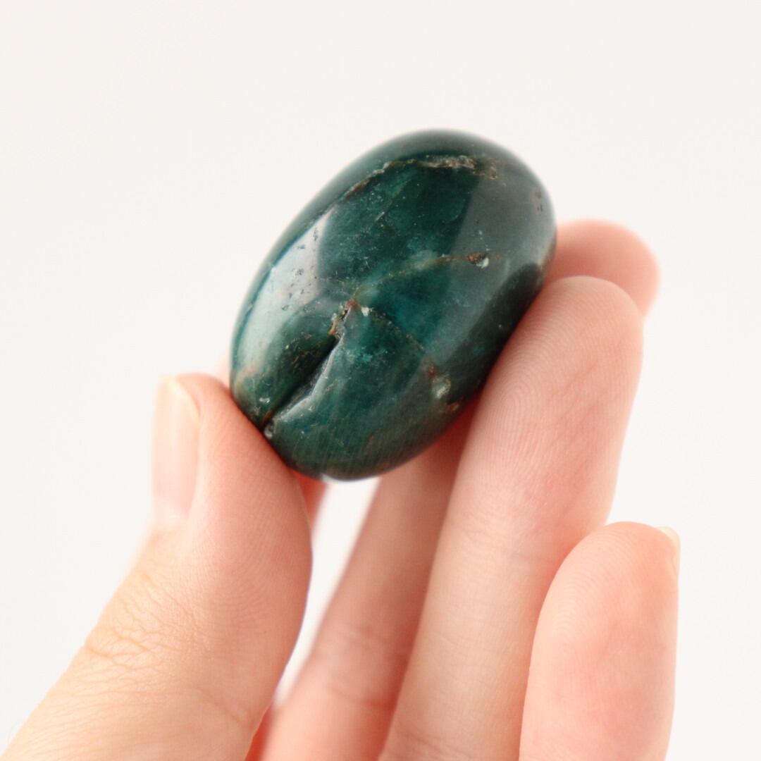 深い海を思わせるブルーグリーンの色合いが美しい、グリーンアパタイトのタンブル。