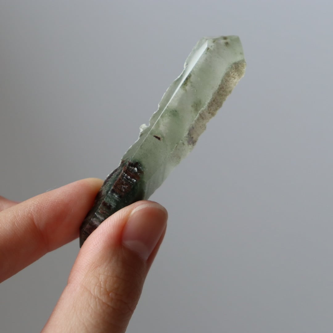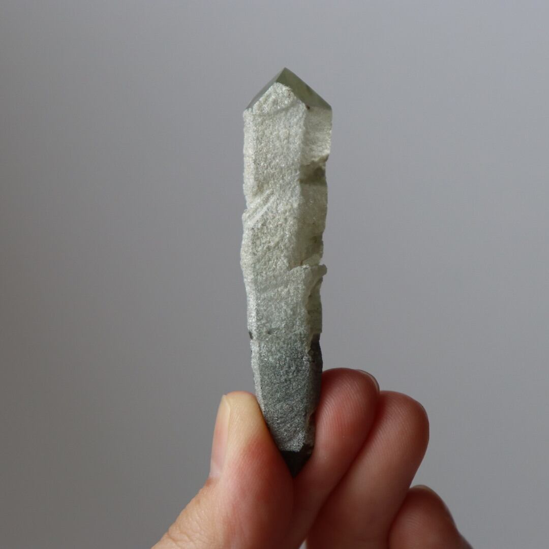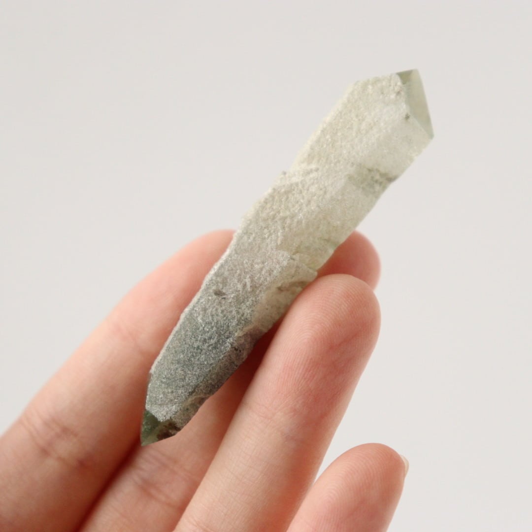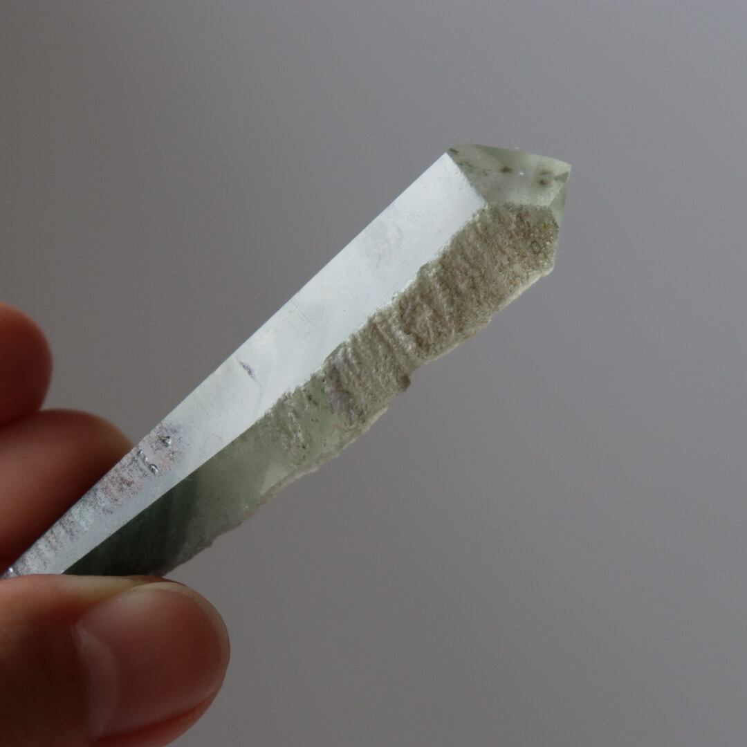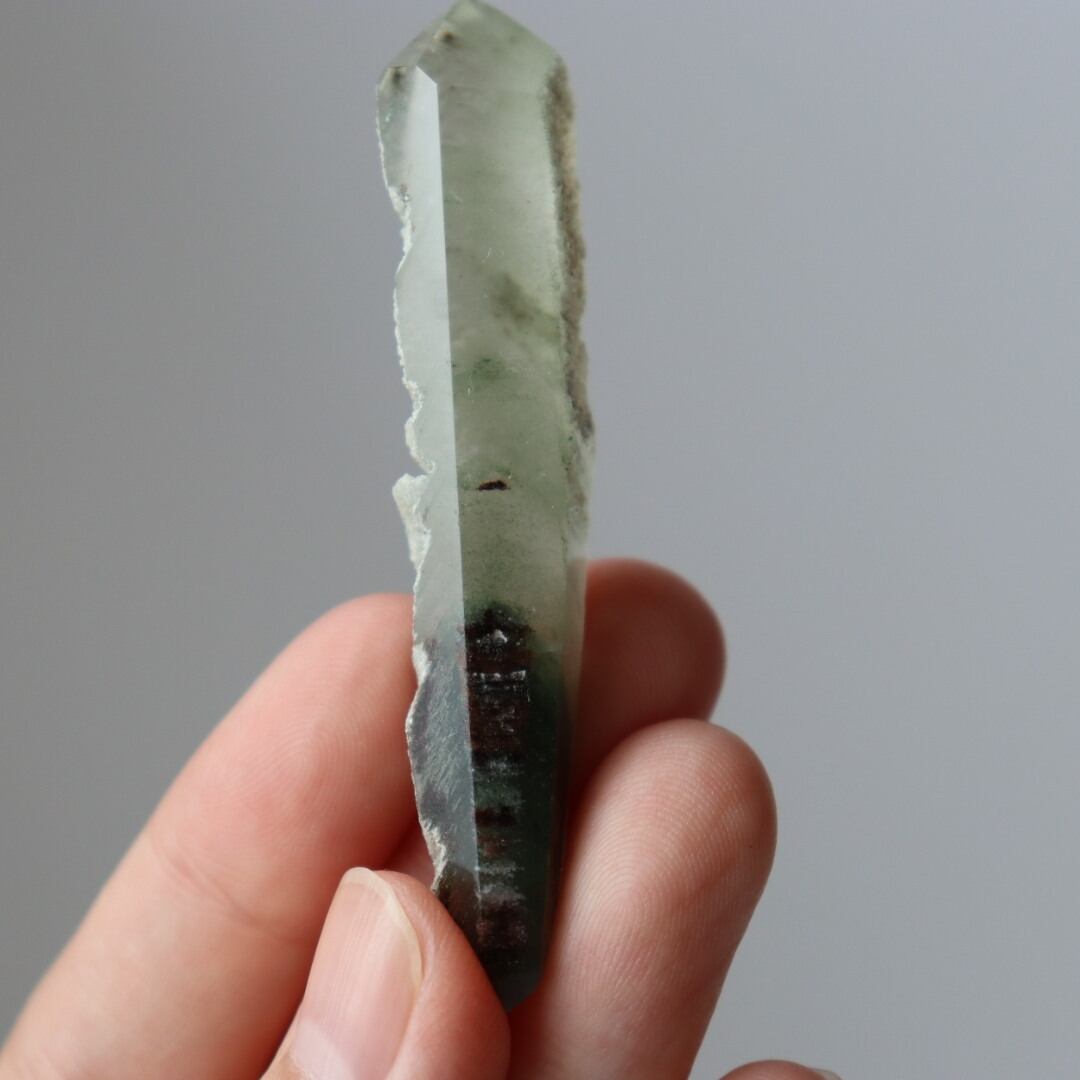 ブラジル・ミナスジェライス州コリント産のクロライトインクォーツ原石ポイント。