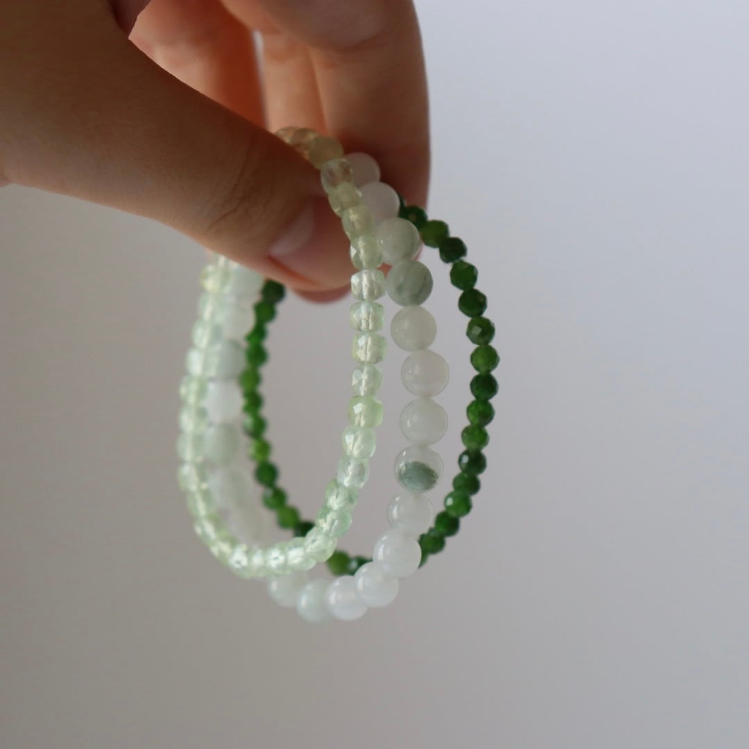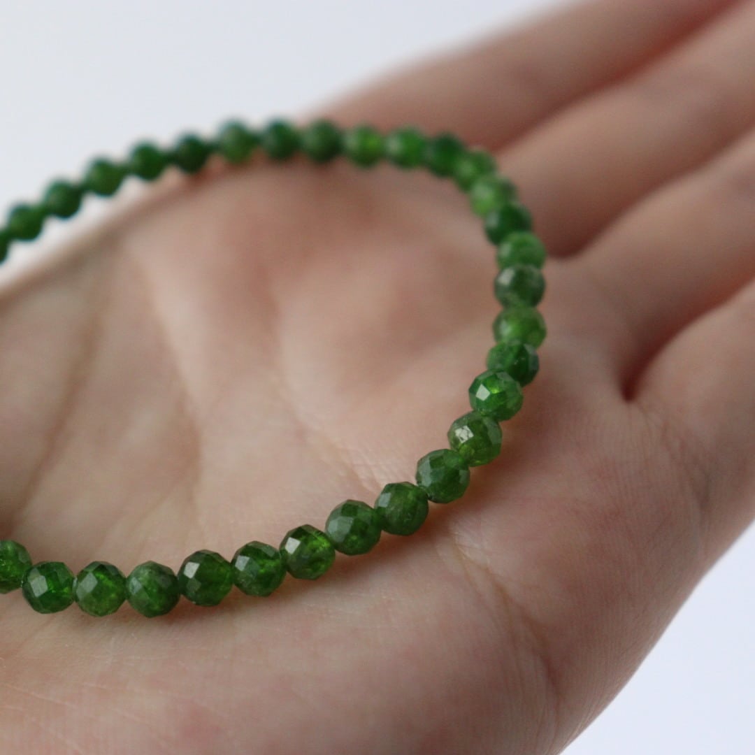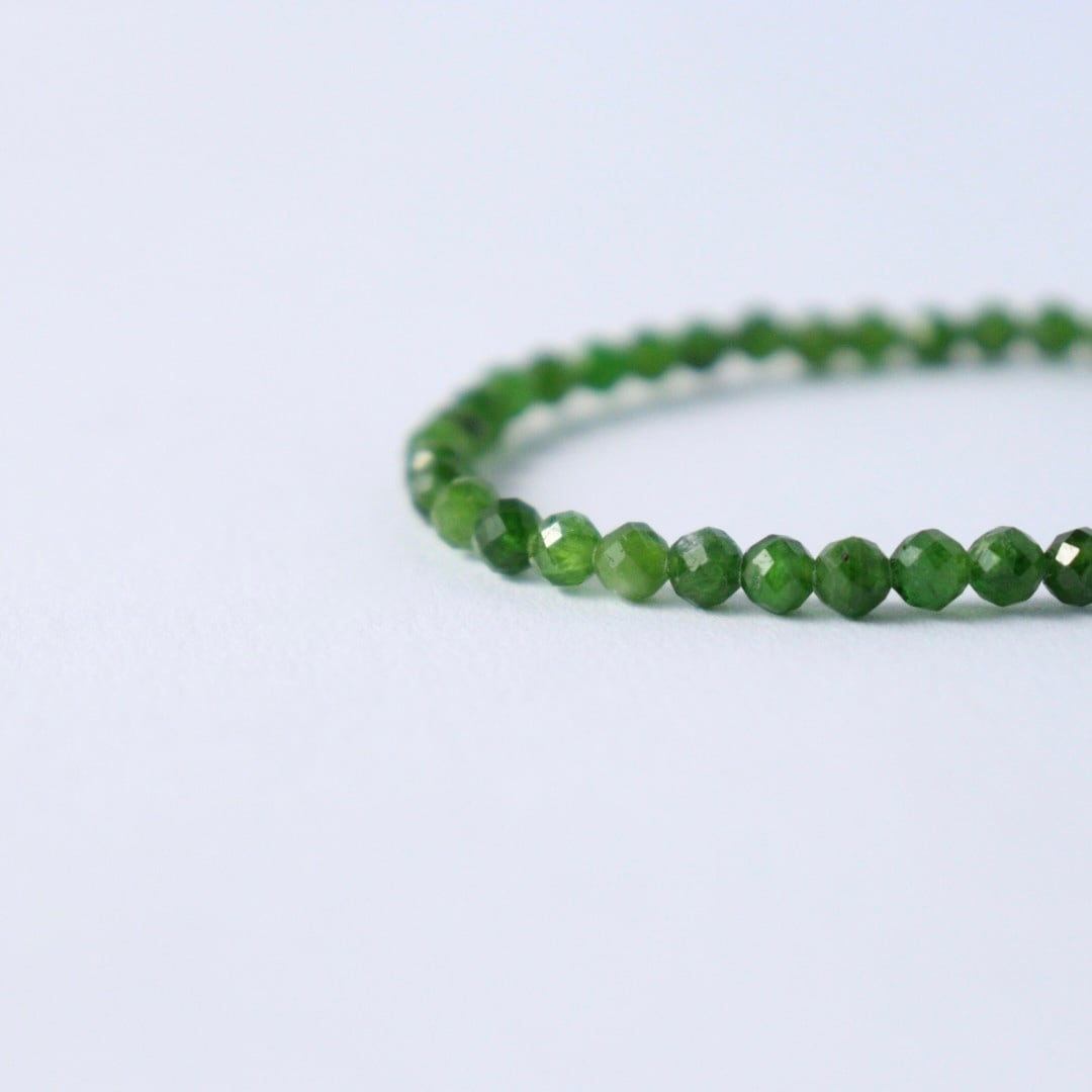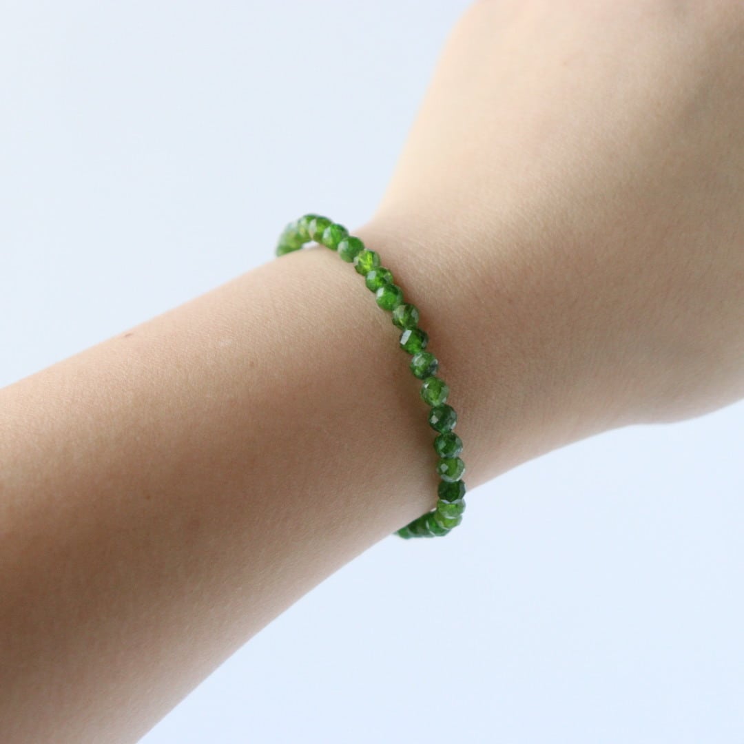 澄んだ新緑を思わせる鮮やかなグリーンが美しい、クロムダイオプサイトのブレスレット。