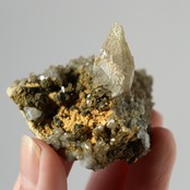 様々な姿かたちで産出されるカルサイトですが、こちらはドッグトゥース(犬牙状結晶)と呼ばれる形。