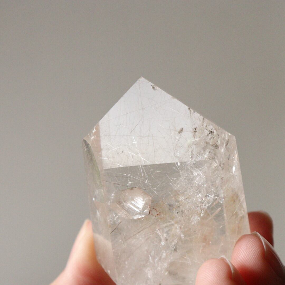 ルチルと水晶の結晶がインクルージョンした