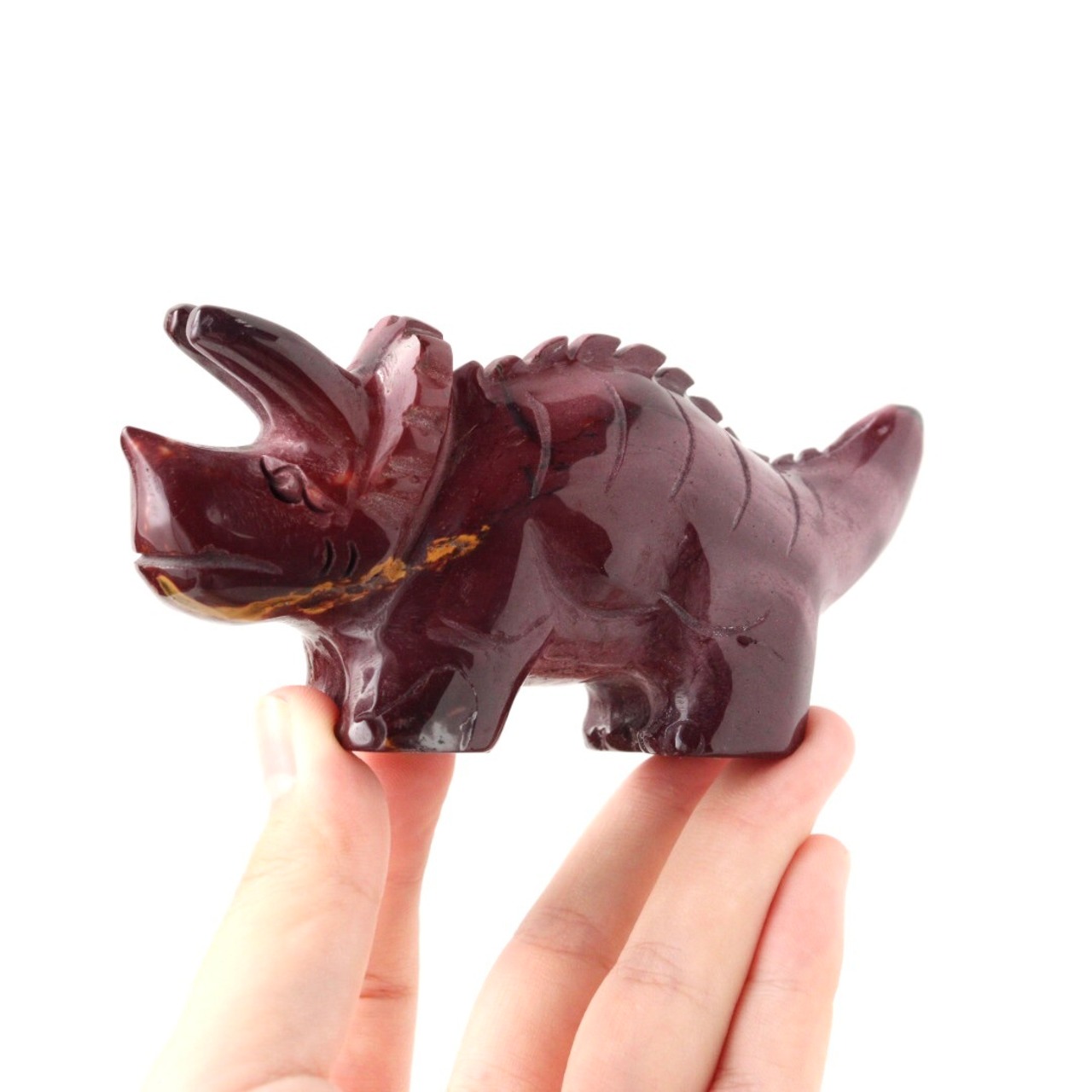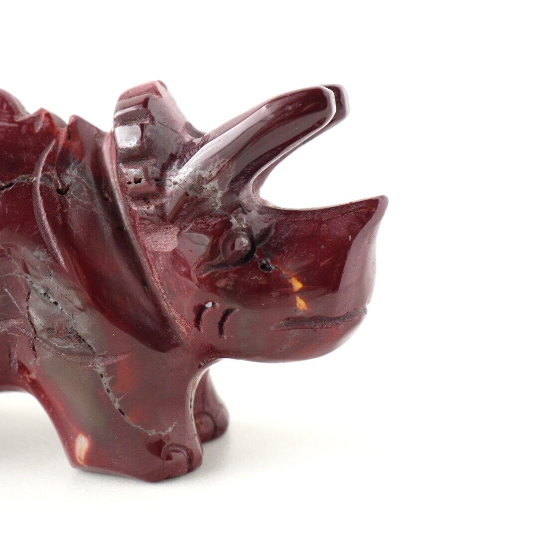 恐竜の一種であるトリケラトプスの形になっており、表情やツノ、尻尾にかけての形まで可愛らしく彫刻されています。