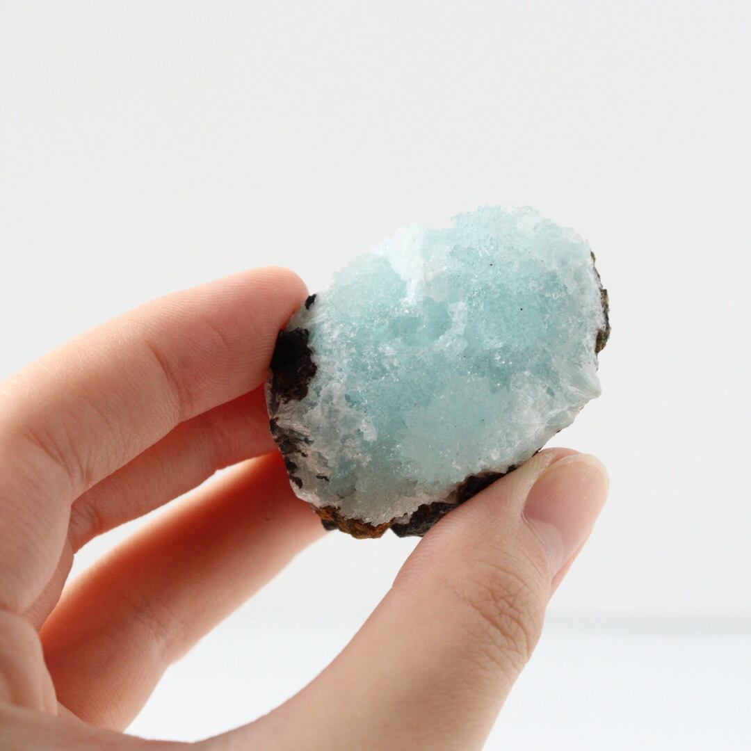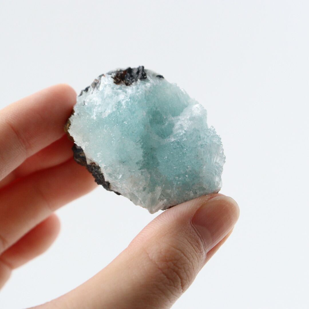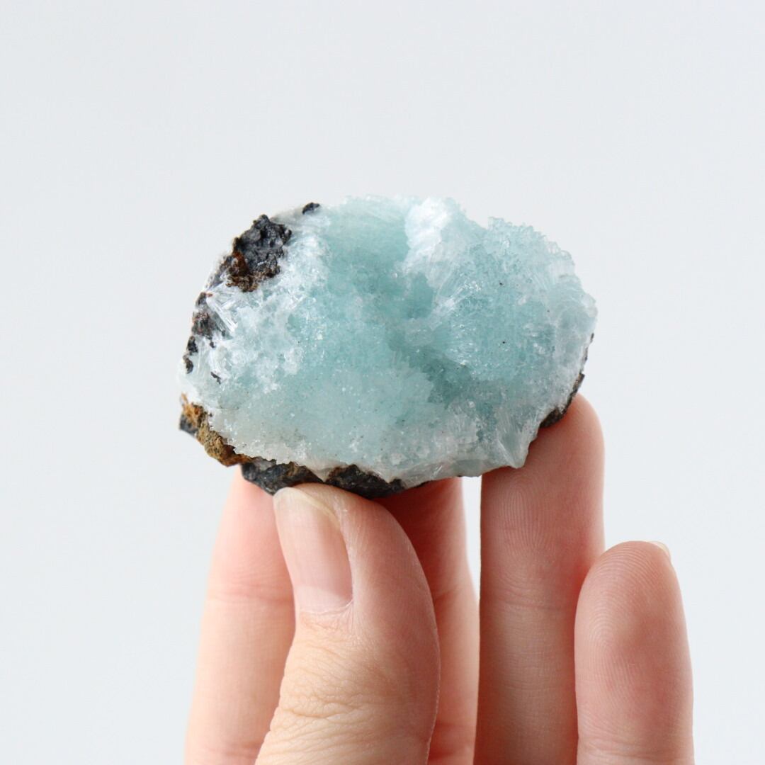 繊細で美しい結晶のブルーアラゴナイトの原石。