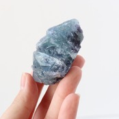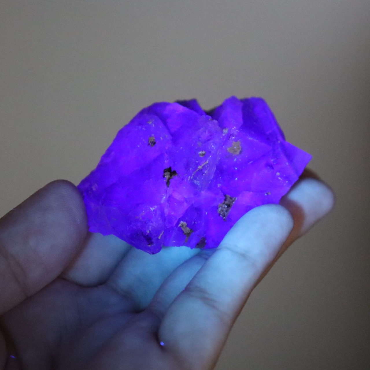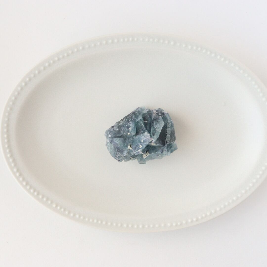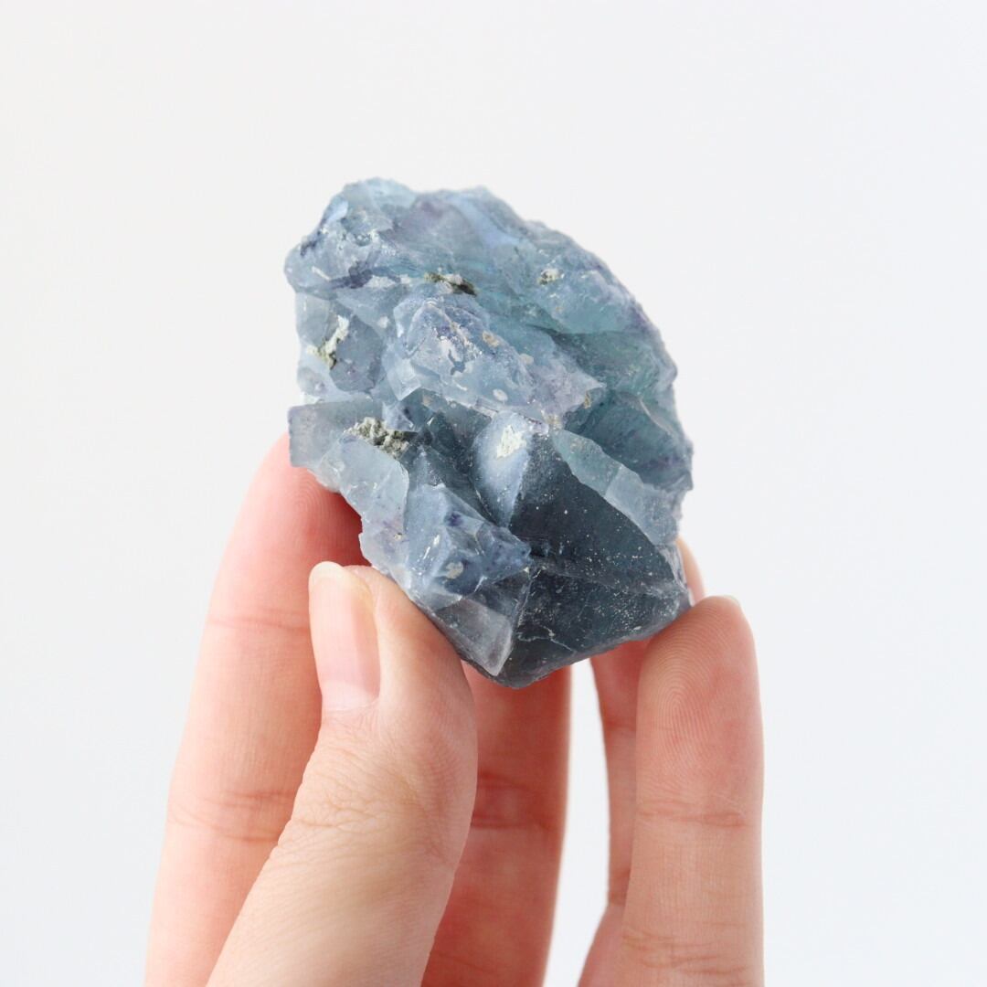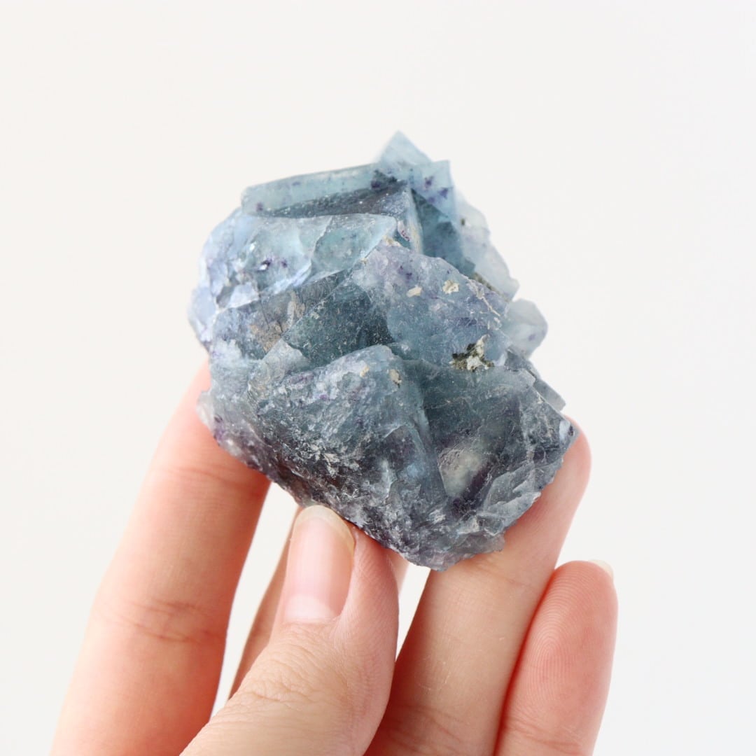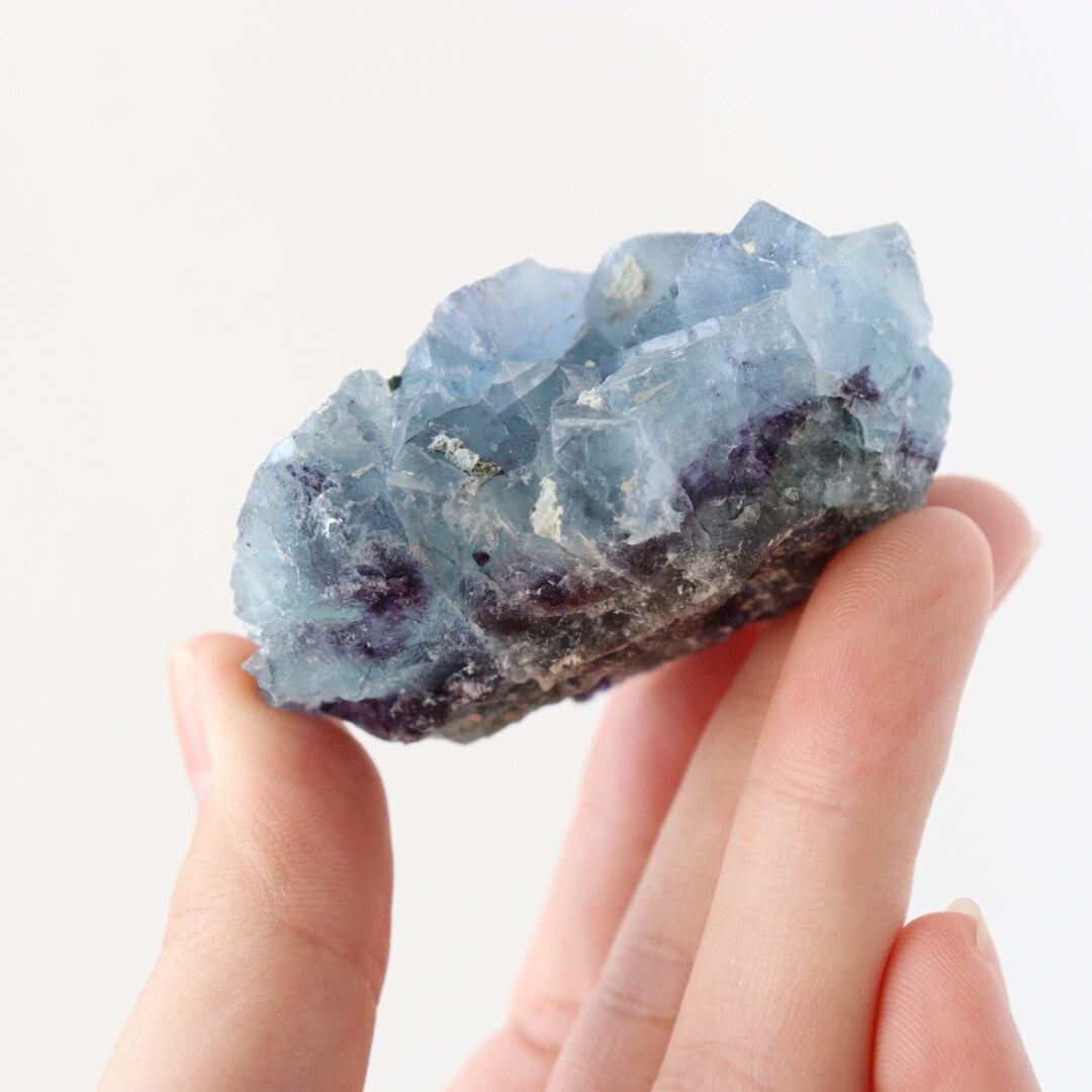 濃いパープルカラーのインクルージョンが入った、ブルーフローライトの原石。