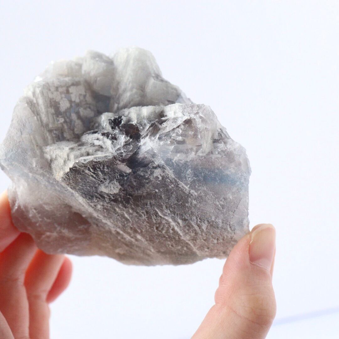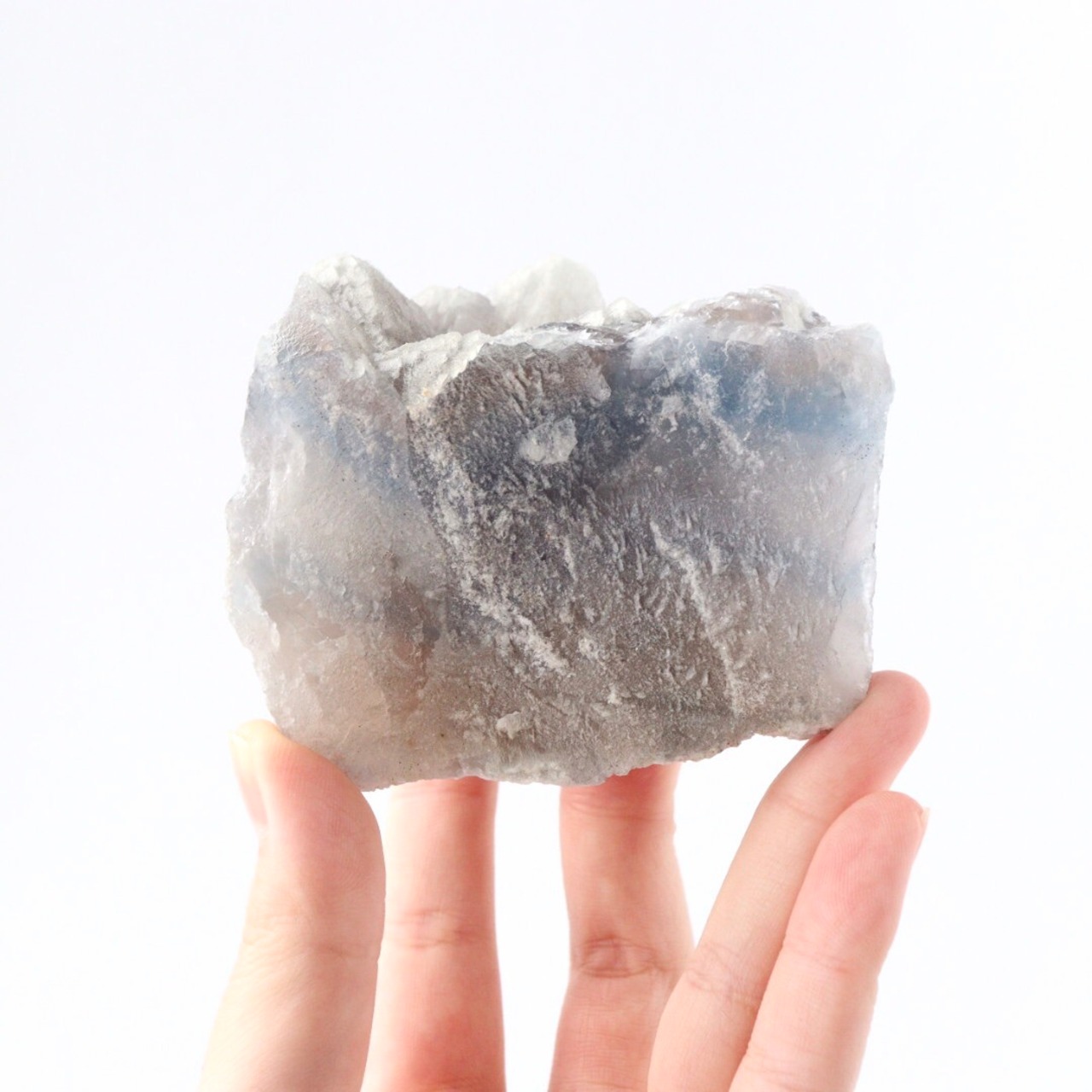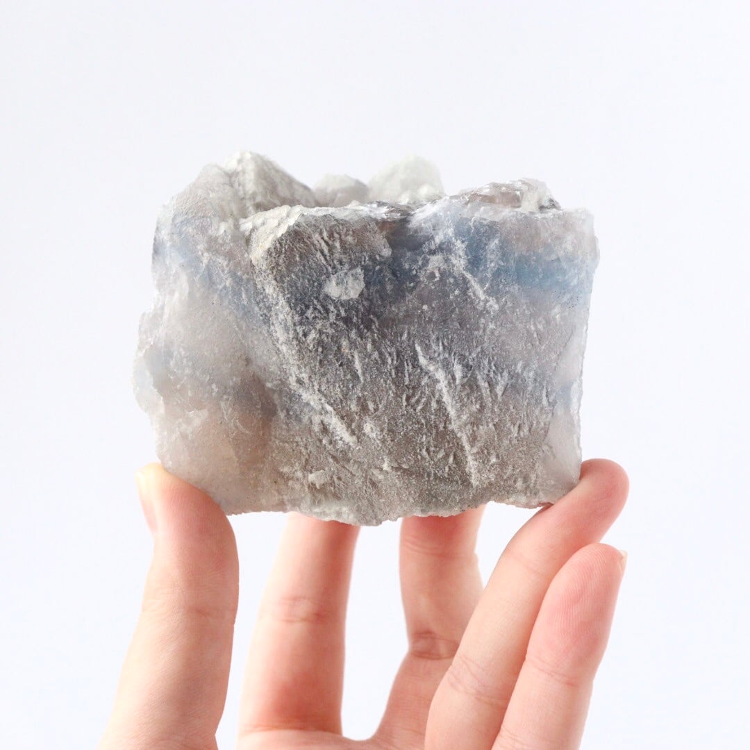 雪の結晶を纏ったようなブルーグレーフローライトの大きな原石。