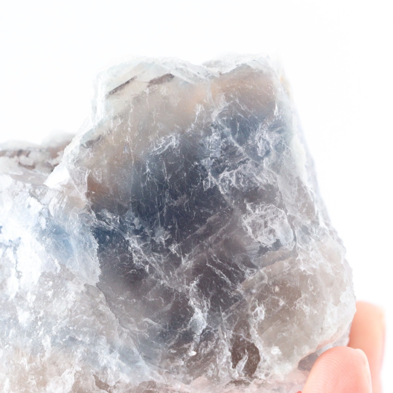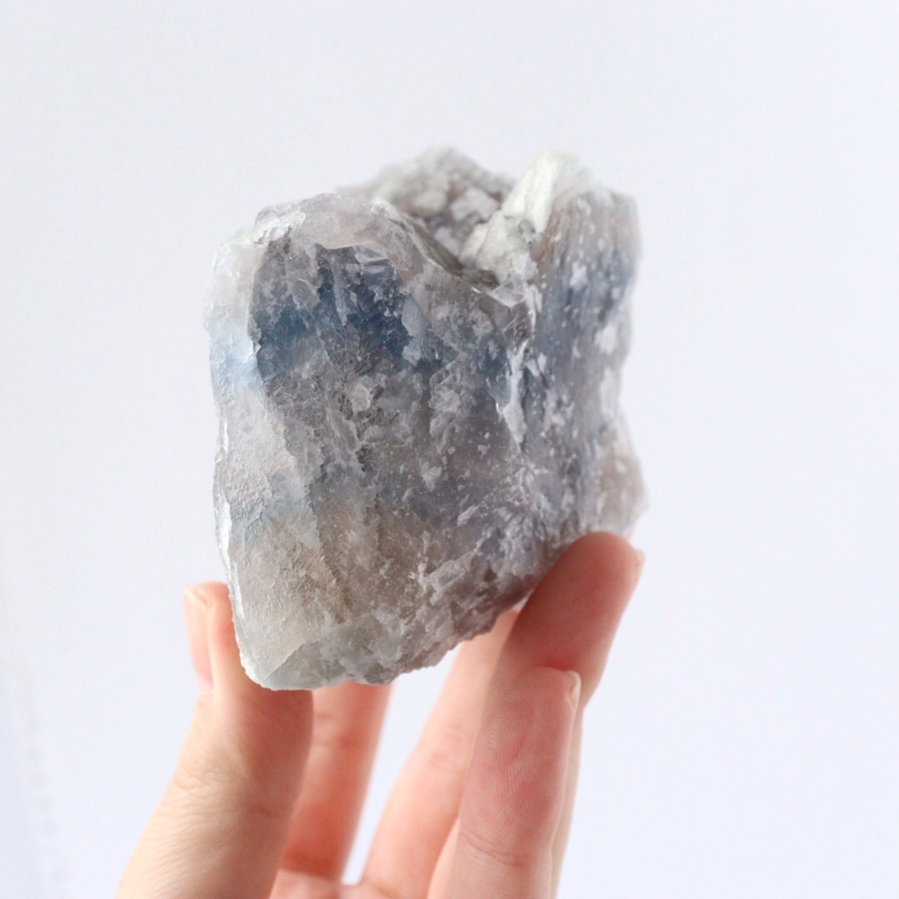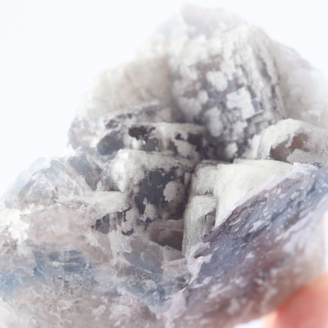 雪の結晶を纏ったようなブルーグレーフローライトの大きな原石。